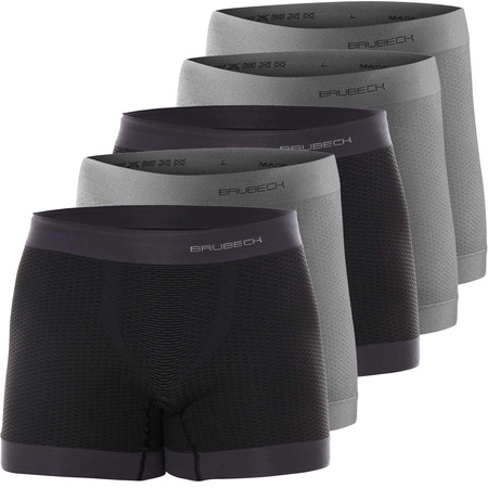 - Komplet bokserek męskich Brubeck z serii Base Layer. Wykonane w technologii bezszwowej z cienkiej, oddychającej dzianiny. Przylegająca ściśle do ciała dzianina oraz struktura 3D siatki tworzą kanały powietrzne, co zwiększa powierzchnię odbioru wilgoci.
